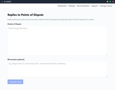 A reply generator that helps you draft consistent responses to Points of Dispute